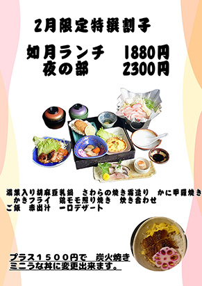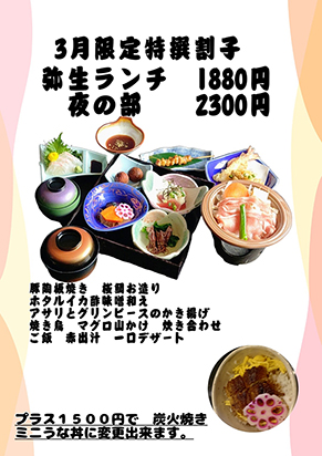 各種弁当、なごや飯、鰻ひつまぶし、釜飯、日本料理など多彩のお料理ができます。駐車場が店舗前に変わりました。5台駐車可能です。